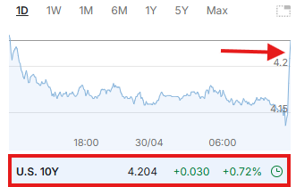 米国債の利回りは急上昇しており、10年物国債の利回りは、データ発表前の最低水準から10ベーシスポイント近く上昇しています。