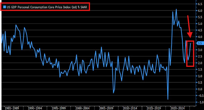 PCE物価指数は、「FRBの政策転換」が始まる前の2024年7月以来の最高値となっています。