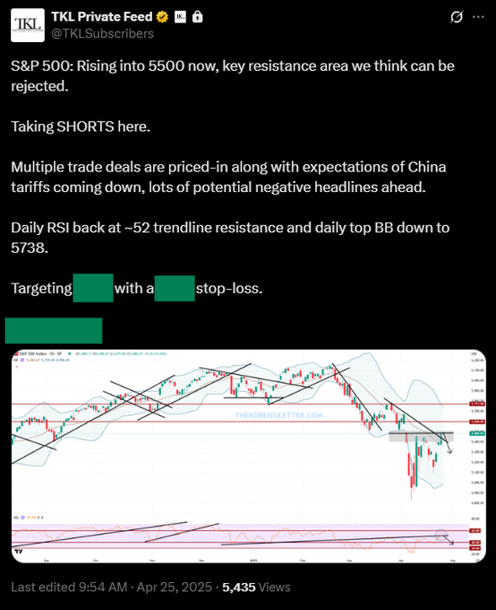 プレミアム会員向けに下記に投稿した通り、S&P 500が5500を超えた際にショートポジションを構築しました。