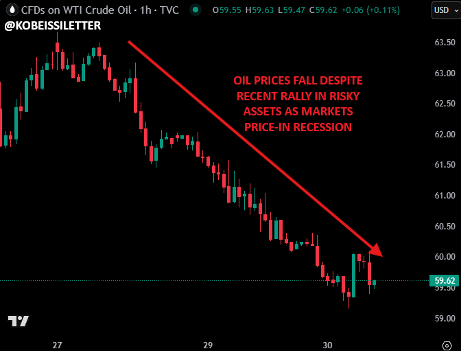 S&P 500などのリスク資産が反発する一方で、石油価格は60ドルを割り込むまで急落しました。