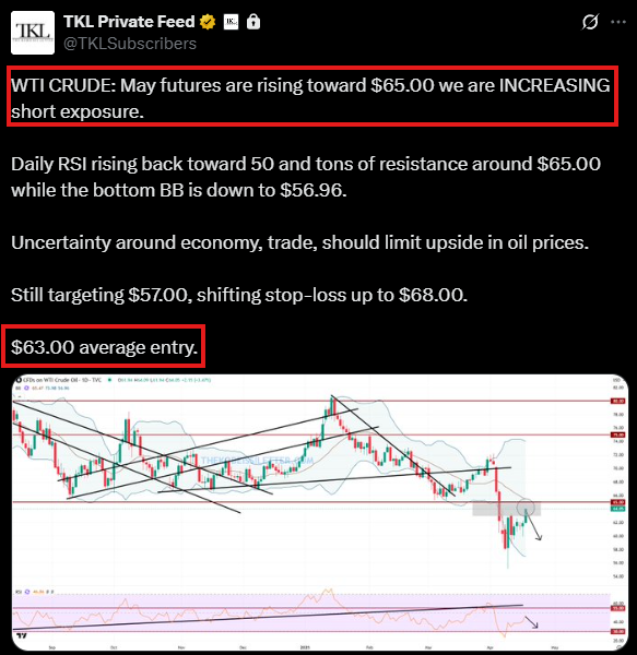 当社のプレミアム会員は、今月初めに原油価格が65.00ドルに近づいた時点で、原油のショートポジションを取りました。