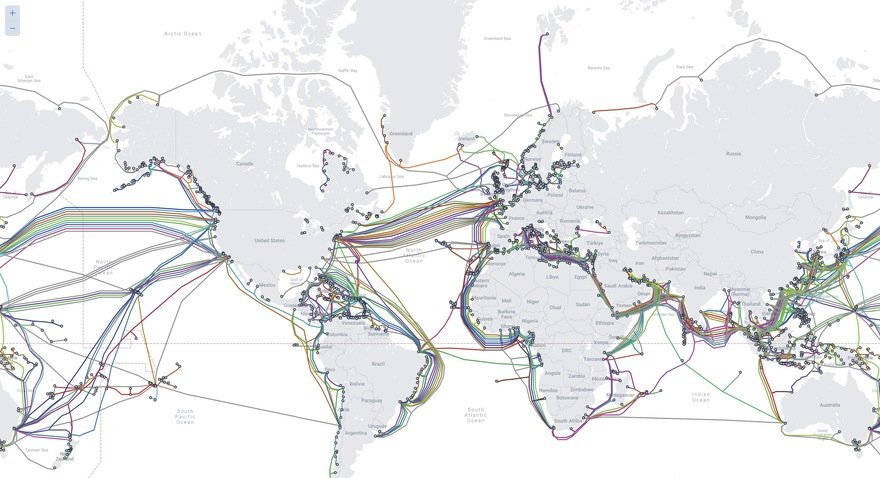 また、世界中でどれほど多くの海底通信ケーブルが使用されているかを見るのも驚くべきことです。
