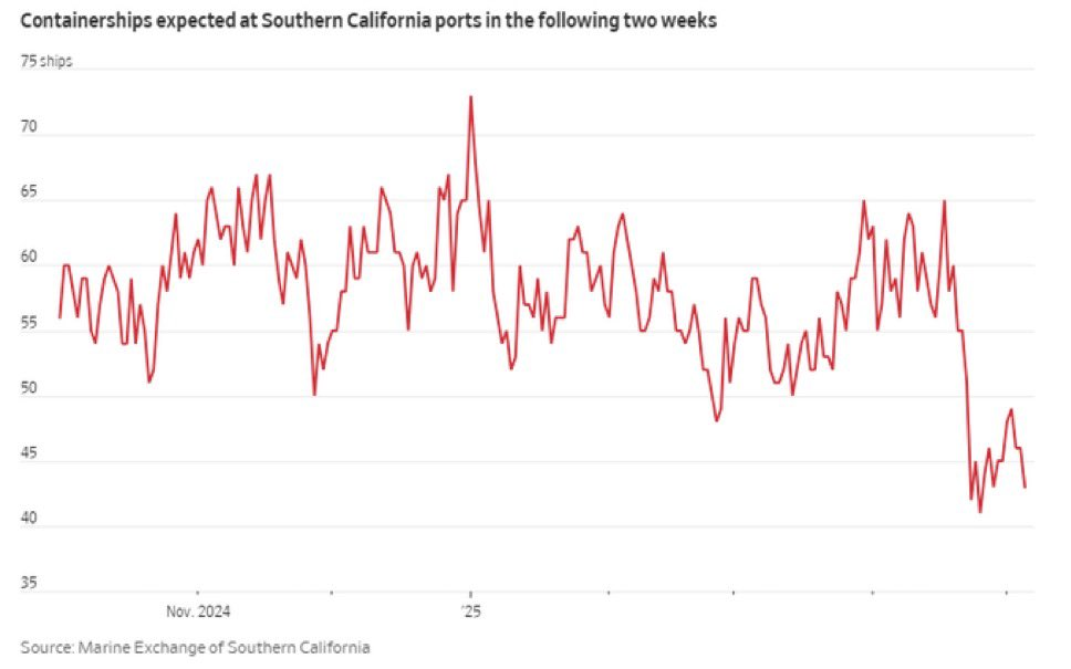 実際に起こっていることで、株式、特に米国株に動きをもたらすのは、米国向けの出荷、特に中国からの輸入の急減です。下のグラフは、そのことをはっきりと示しています。