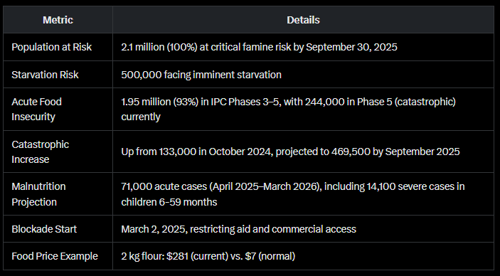 🧬 5月12日、IPCは次のように確認しました:ガザの人口(210万人)の100%が、2025年9月までに深刻な飢饉のリスクに直面しています。