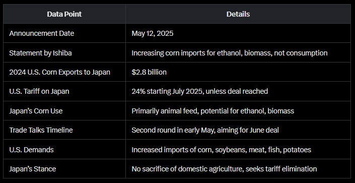 トランプ大統領の24%の自動車関税(7月期限迫る… ⏳)の圧力下で、東京は戦略的な手を打つ:米国産コーンの輸入を増やす。
