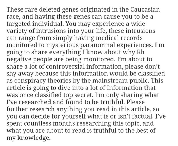 これらの希少な削除された遺伝子は、コーカサス人種に起源を持ち、これらの遺伝子を持つと、標的とされる個人になる可能性があります。人生に様々な干渉を受ける可能性があります。これらの干渉は、医療記録の監視から、謎の超常現象体験まで多岐にわたります。Rh陰性の人々が監視されている理由について、私が知っている全てを共有します。これから多くの議論を呼ぶ情報を共有します。主流の一般大衆からは陰謀論と分類される可能性があるため、臆して離れないでください。この記事では、かつて最高機密に分類されていた多くの情報に深く迫ります。私は、研究し真実であると判断した内容のみを共有しています。この記事で読んだ内容は、ご自身でさらに調査し、事実かどうかを判断してください。私はこのテーマについて数ヶ月間調査を重ね、これからお伝えする内容は、私の知る限り真実です。