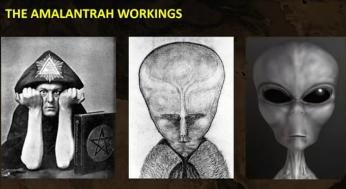 フリーメイソンなどの秘密結社は、古代の神秘学派のオカルト主義(上級者限定)を教え、アレイスター・クロウリーのようなルシファー教徒たちは、アマラントラの儀式で別の次元への扉を開き、「最初の灰色の宇宙人」であるラムを召喚したと主張しました。