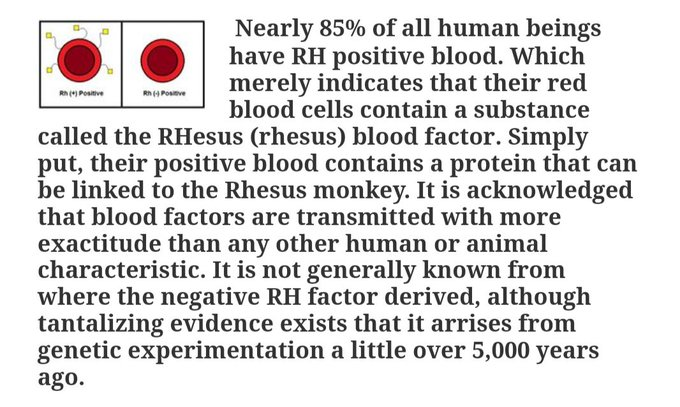 主流の科学者たちは、Rh陰性血液は突然変異であると主張して、自ら矛盾しています。おそらく、その存在が、人類の歴史を通じて遺伝的血統が途絶えることなく受け継がれてきたという説を覆すからです。