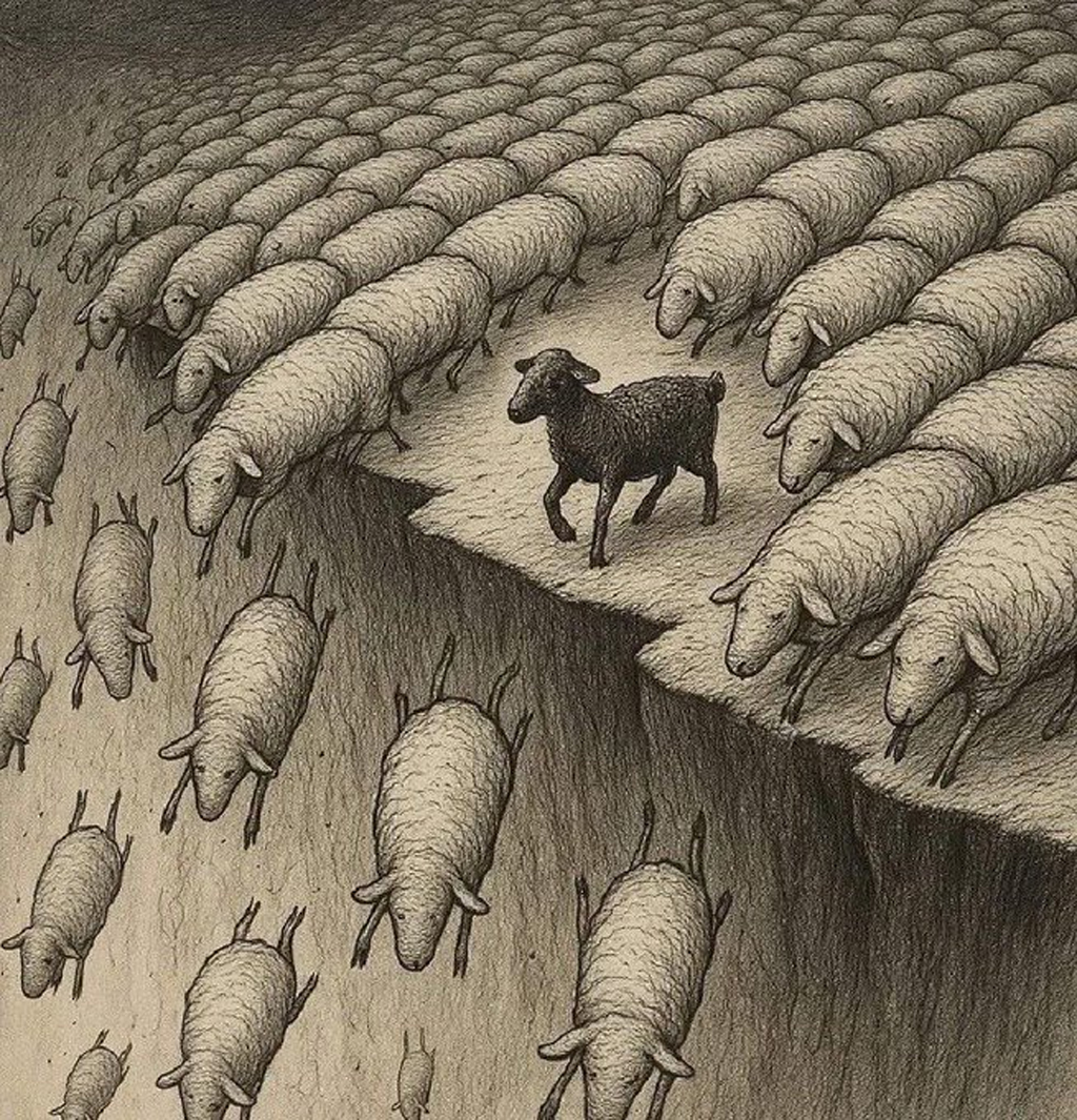 群れが疑問も持たずに道を歩む中、あなたは立ち止まりました。空を見上げ、風の声を聴きました。