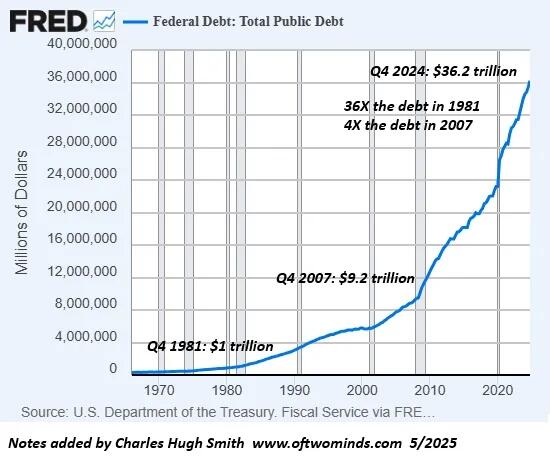 連邦政府の赤字支出と、退職者への社会保障支出の過大配分は、事実に基づいて議論するだけであまりにも衝撃的すぎて、私たちは触れないことにしています。しかし、数字が合わないため、船は沈没するでしょう。これは20年前、私が次のように投稿した時点で明らかでした:「ベビーブーマーたち、自らの剣に倒れる準備を」(2005年6月)。この投稿では、裕福なベビーブーマーたちが、必要な犠牲を若年世代に押し付けるのではなく、優雅に受け入れることで問題に対処すべきだと提案しました。
