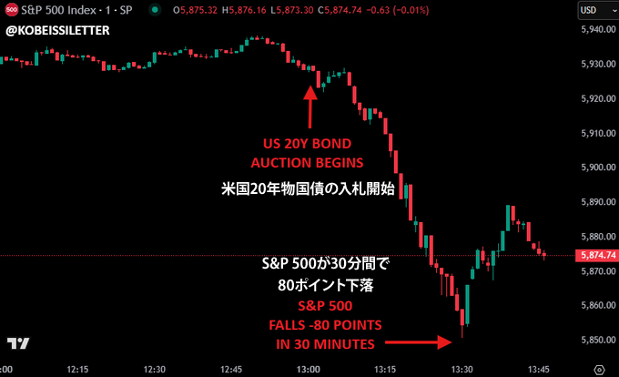 実際に起こったことは、20年物国債の入札が低迷し、米国債の利回りが急上昇したことです。