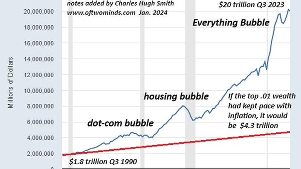 しかし、すべてのバブルは崩壊し、少数の貪欲と多数のニーズの両方を満たすための手段も残されていません。上位0.01%が、下位50%(1億7000万人)の5倍の資産を所有しています。これは、安定性という名目のもとで美化された、非常に深刻なエントロピーです。