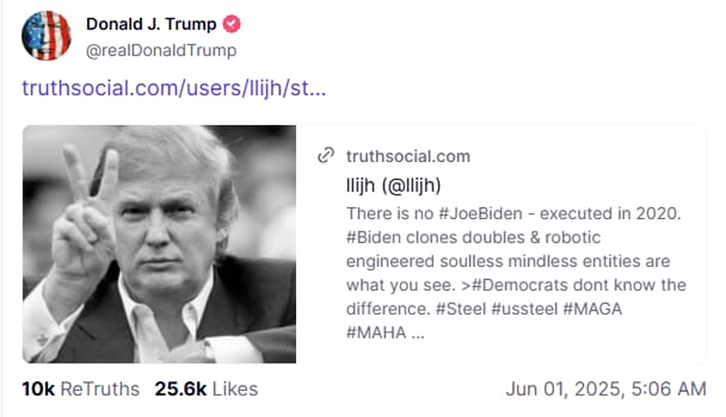 トランプ氏の確認は、単なるSNSの投稿ではなく、ダムの最初の亀裂です。旧バイデン政権は、自らの嘘の重みに耐えきれず崩壊しつつあります。操り人形たちは崩壊しつつあります。真実は突き進み、エリートたちの隠蔽工作ではそれを止めることはできません。