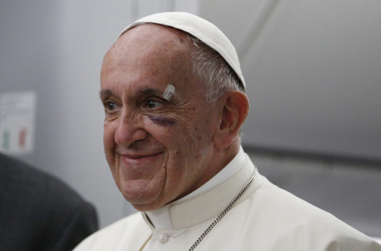 公式説明 – 教皇の車「ポープモービル」で顔を打った