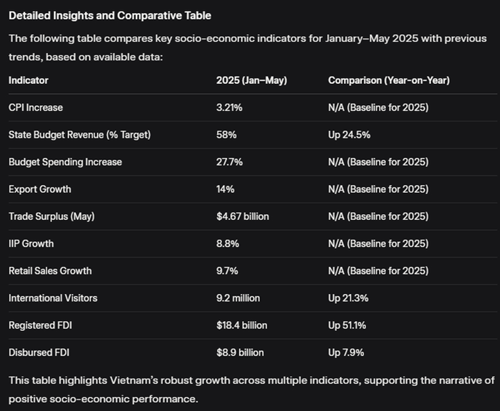 金融リセット:数字は好調です。5月だけで小売売上高が9.7%増、工業生産が8.8%増、貿易黒字が46.7億ドルに達しました。ベトナムは単に成長しているだけでなく、経済を保護しています。強いFDIの流れは、国内の安定に対する信頼を示しています。政府は迅速に動き、1,100件を超える新たな経済指針を策定し、財政の柔軟性を高めています。国内インフラへの投資により、ベトナムの経済的主権がさらに強化されることが予想されます。