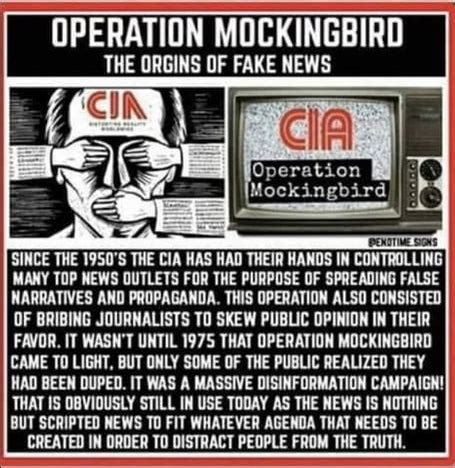 トランプが「フェイク・ニュース」と呼ぶものは、ジャーナリズムをプロパガンダに変え、ジャーナリストをCIAの資産に変えることを目的としたプログラム「OPERATION MOCKINGBIRD」の直接の派生です。