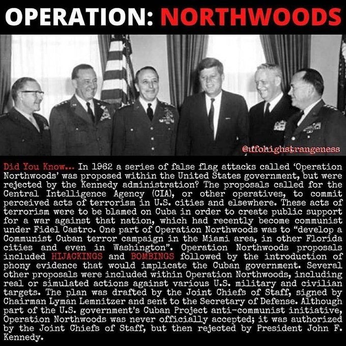 1962年、統合参謀本部は、キューバとの戦争を正当化するために、アメリカ人に対して偽旗作戦を仕掛ける「OPERATION NORTHWOODS」という計画を提案しました。