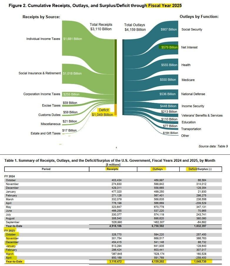 共和党が94億ドルのDOGE削減案を可決したのは、無知な大衆に、彼らが実際に赤字対策に取り組んでいると信じ込ませるためのPR戦略にすぎません。ドラフトキングスに賭け、Instagramにビデオを投稿している愚か者たちは、私たちの政府がどれほどばかばかしいほど制御不能になっているか全く理解していません。彼らは毎日60億ドルの国家債務を増やし続けているので、94億ドルの「削減」は37時間で消えてしまうでしょう。私たちの赤字は巨大ですが、美しいものではありません。2024年度(FY24)の赤字は1.8兆ドルでした。2025年度(FY25)の最初の7ヶ月間で、赤字は1.049兆ドルに達しています。現在の支出ペースが続けば、会計年度末までに赤字は2.2兆ドルに達するでしょう。