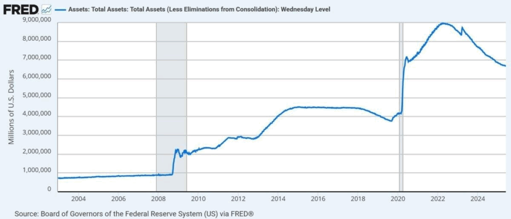 彼らはバランス・シートを9兆ドルから6.7兆ドルに削減しました。2019年に最後にバランス・シートの削減を試みたところ、レポ市場が痙攣し、彼らはCOVIDを口実にして、FIATを大幅に増刷しました。トランプはパウエルを嘲笑し、金利引き下げを要求しています。パウエルは独立を装っていますが、何らかの危機が起こって再び紙幣印刷機をフル回転させることを願っています。支配層である寡頭政治者たちは、民衆をさらに貧困化し奴隷化しながら、自らの富、権力、支配力を拡大するための新たな危機を企てているに違いありません。