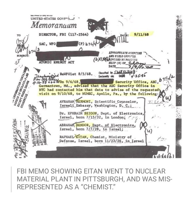 NUMECの創設者であり社長であるザルマン・シャピロは、単なる原子力技術者ではありませんでした。彼は、イスラエル情報機関と強いつながりを持つ高位のシオニストでもありました。アメリカ・シオニスト機構のピッツバーグ支部長として、シャピロはイスラエルに友好的な政治ルートに深く入り込んでいました。