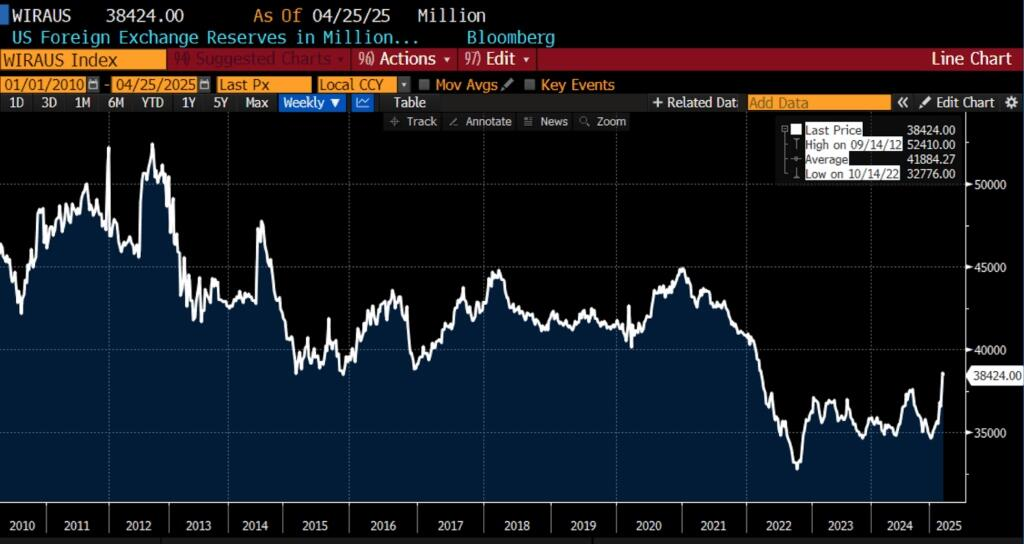 米国の外貨準備高(単位:百万米ドル)、2010年~現在