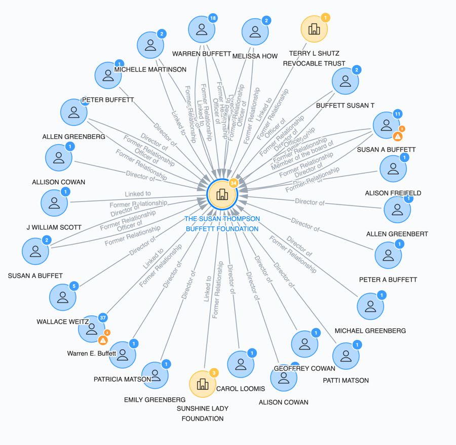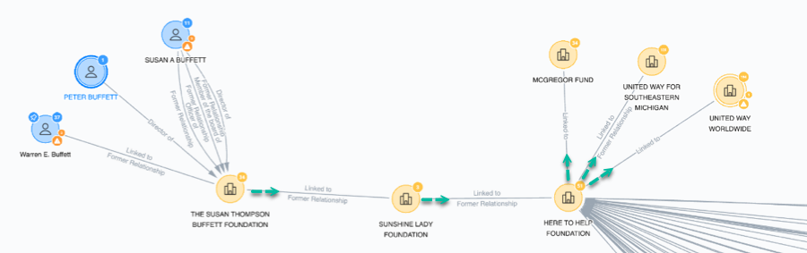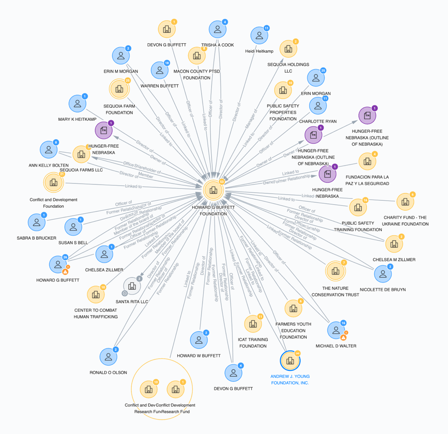公開されているデータを用いて、これらの非営利団体のリーダーシップと所属関係をマッピングし、複雑な非営利団体のネットワークの中で、これらの資金がどこへ流れる可能性があるかをより深く理解しました。