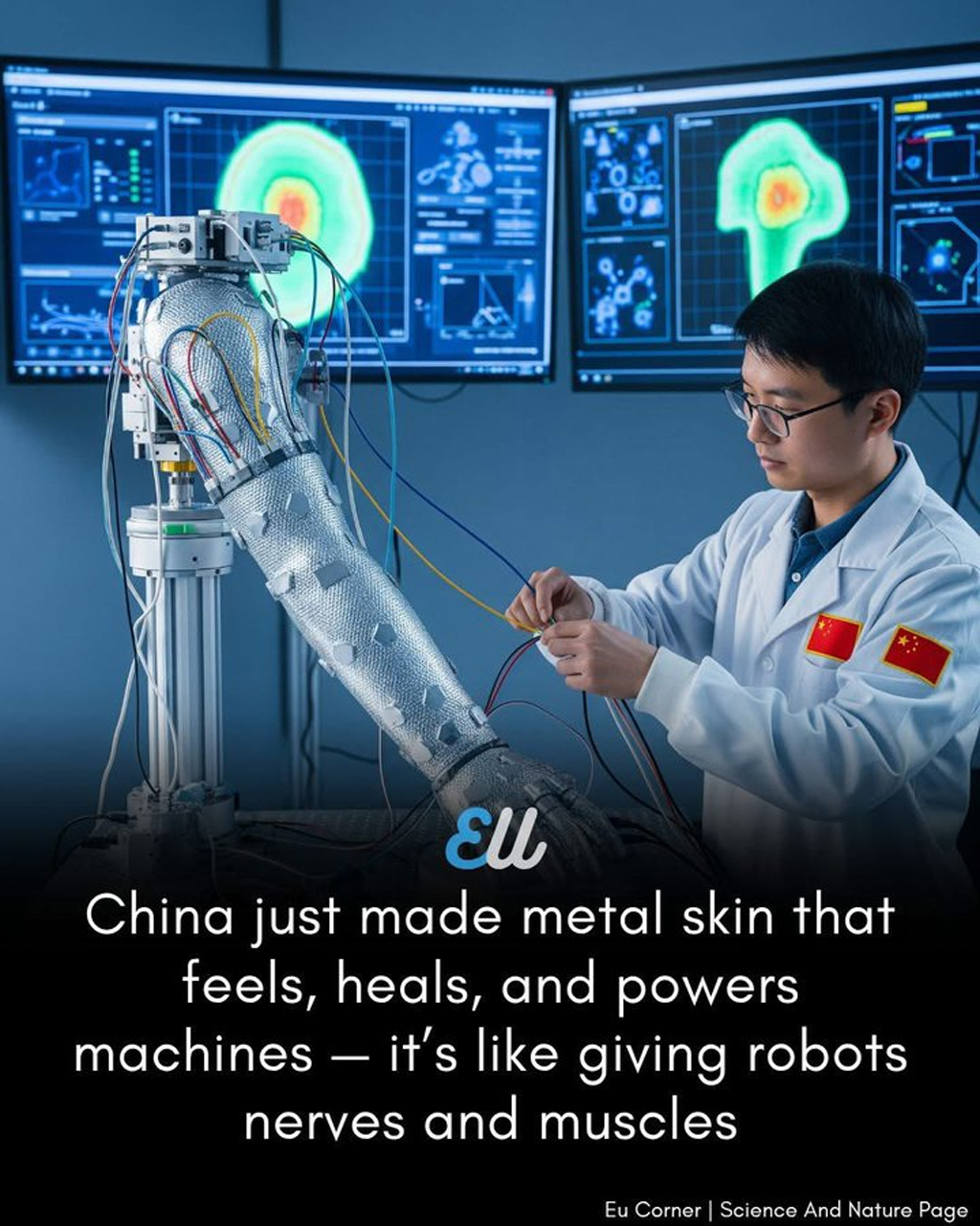 中国の科学者が、自己修復、曲げ、電池のようにエネルギーを蓄えることができる超金属皮膚を開発しました。