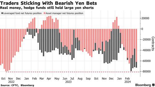 ブルームバーグによると、ヘッジファンドは3月の日銀会合までの1週間で、弱気の円買いを増やしたという。商品先物取引委員会の3月19日までのデータによると、為替市場でレバレッジを効かせた投機筋は、円安の賭けに絡む契約の保有を80,805枚まで増やし、先月達成した6年ぶりの高値83,562枚に近づいた。