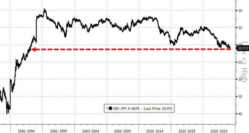 円相場は人民元に対して30年ぶりの安値…