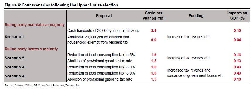 完全なメモにはさらに多くの内容が記載されている(ここを参照)が、参院選後に最も起こりそうな4つのシナリオに関するソシエテ・ジェネラルの結論は以下のとおりです。