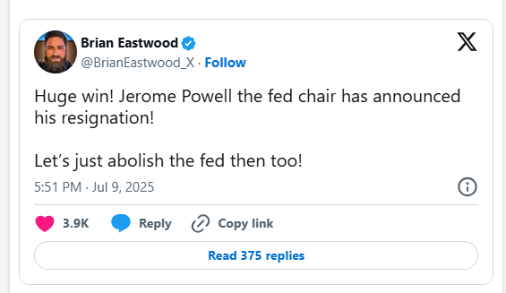 過去24時間に、この報道は、憶測、内部情報、FRBに対する高まる政治的圧力に煽られて、インターネット上で広く流布しました。