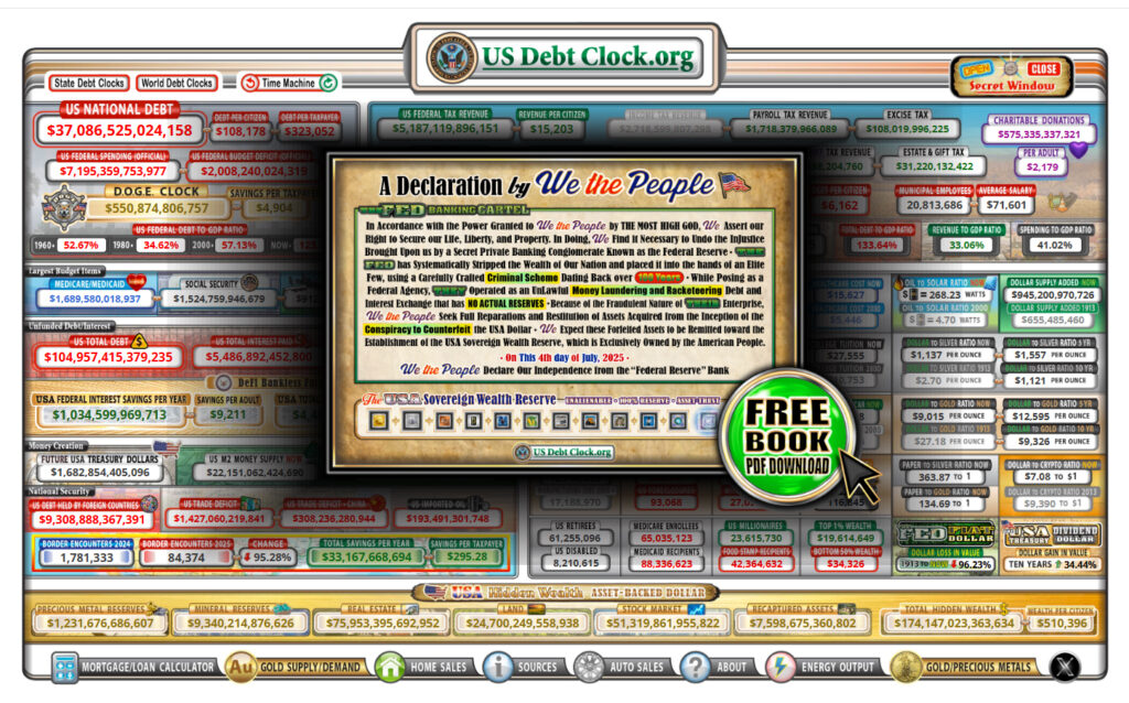 http://usdebtclock.orgの米国債務時計にアクセスし、「Secret Window」タブをクリックしてPDFをダウンロードしてください。