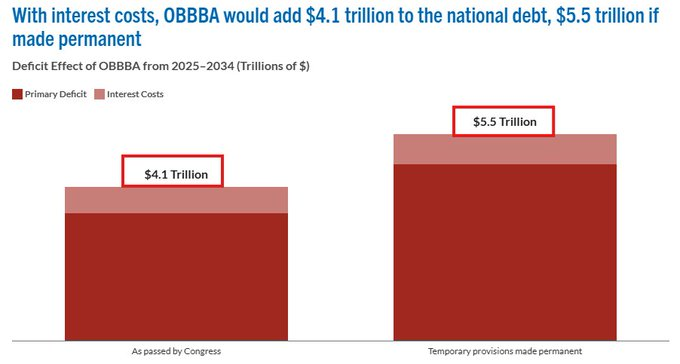 この法案が恒久化すれば、米国の債務は5.5兆ドル増加すると予測されています。