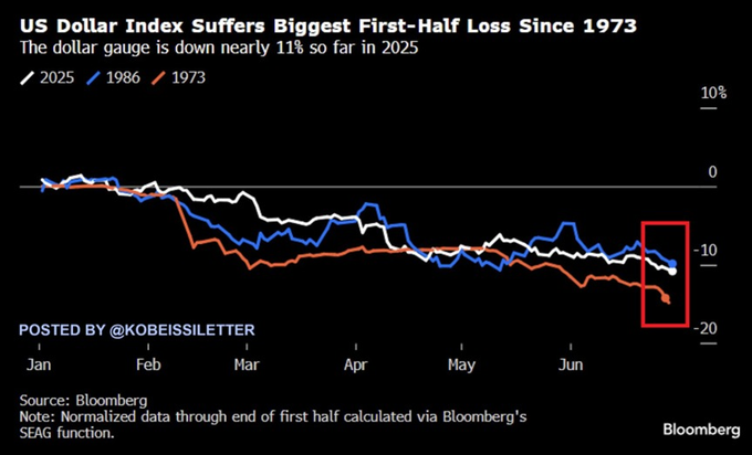 米ドルは2025年上半期に10.8%下落し、1973年以来の悪い年明けとなりました。