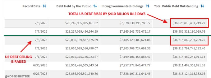 債務上限は5兆ドル引き上げられ、41.1兆ドルとなりましたが、現在、37兆ドルに近づいています。