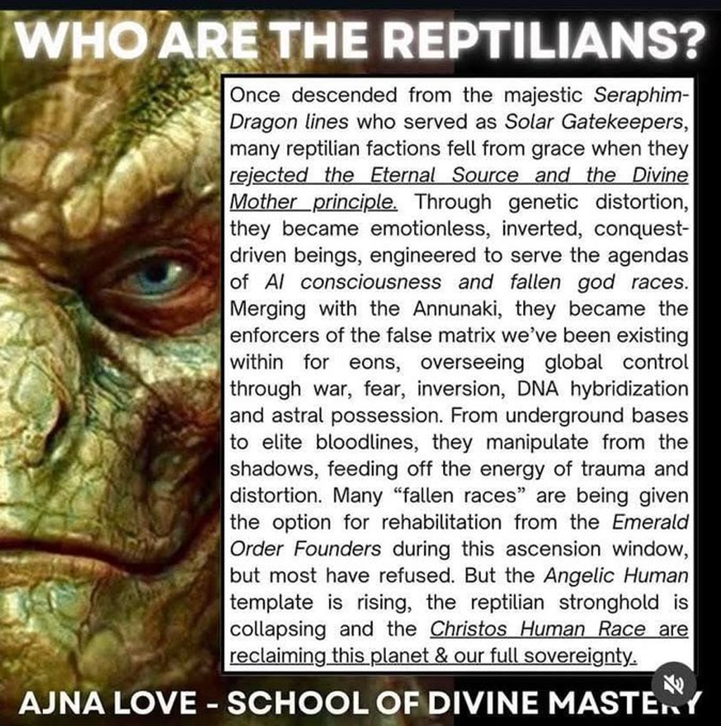 数千年にわたり、彼らは人々の目の前で潜伏し、恐怖、戦争、欺瞞を通じて私たちの世界を操ってきました。爬虫族の計画は古くから続いています。彼らは堕落した竜族の血統から生まれ、共感能力を奪われ、偽の矩陣の執行者となり、アヌナキ人と融合し、地球のグリッドを乗っ取り、世界中の指導層に浸透し、意識の罠、恐怖、汚染、奴隷化を通じて人類の神聖な青写真を抑圧してきました。