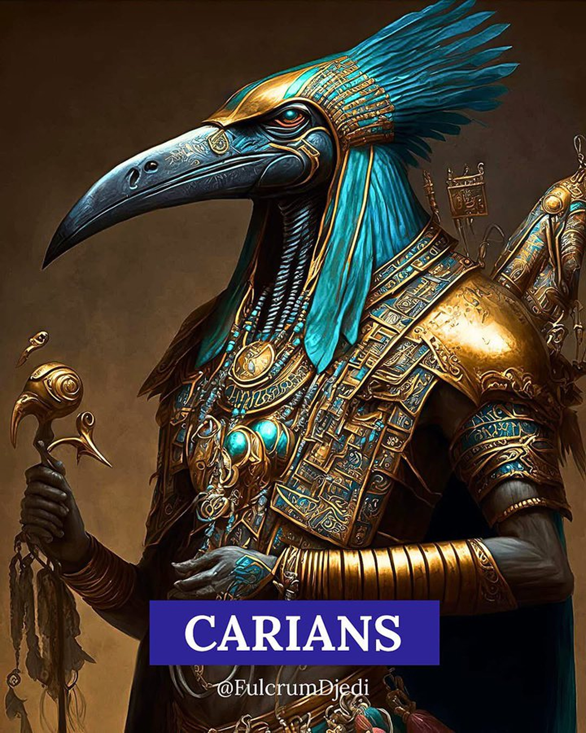カリアンは鳥のような姿をした種族です。彼らは人間に似ていますが、鷲のような特徴と色合いを持っています。