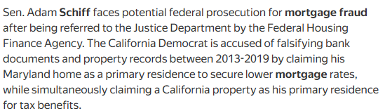 A. シフは現在、住宅ローン詐欺の調査を受けています!