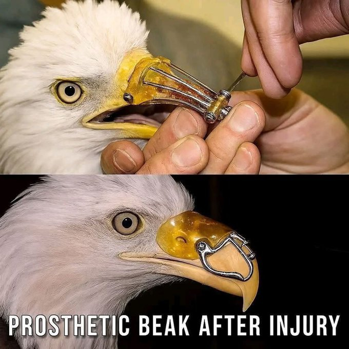 💡 野生動物の専門家とエンジニアからなるチームが協力し、カスタムメイドの3Dプリントの偽のくちばしを設計しました。