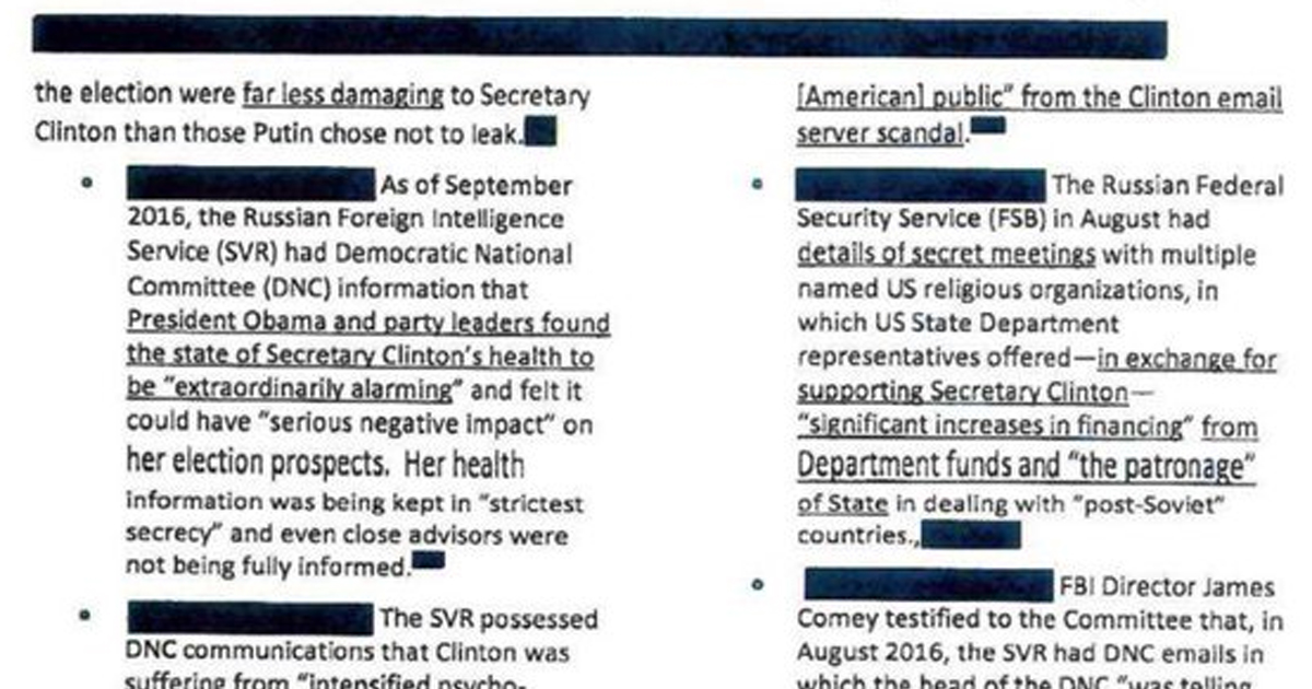 それによると、ロシアは2016年の選挙戦最終日に、クリントン氏を攻撃するための膨大な量の不利な情報を保有していたことが明らかになりました。その情報には、次のようなものが含まれていました。