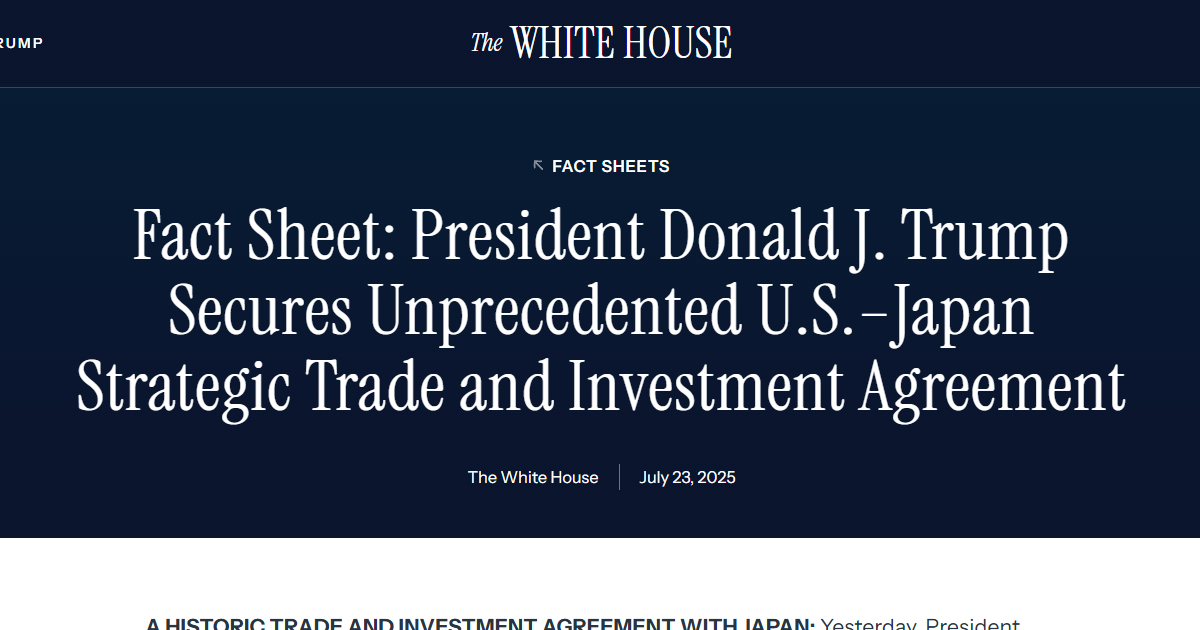 日本との歴史的な貿易・投資協定:昨日、ドナルド・J・トランプ大統領は、米国の最も親密な同盟国であり、最も重要な貿易相手国である日本との画期的な経済協定を発表しました。