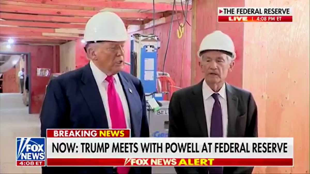 ドナルド・J・トランプ大統領がFRB本部に入館。テレプロンプターも警告もなし。カメラと書類、そしてただひとつの目的、ジェローム・パウエル氏に責任を追及することだけ。