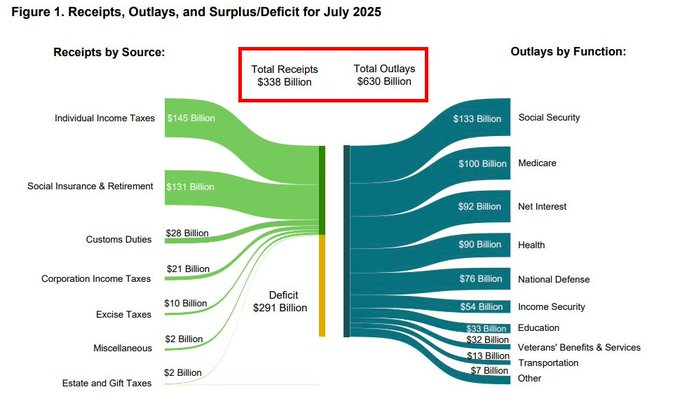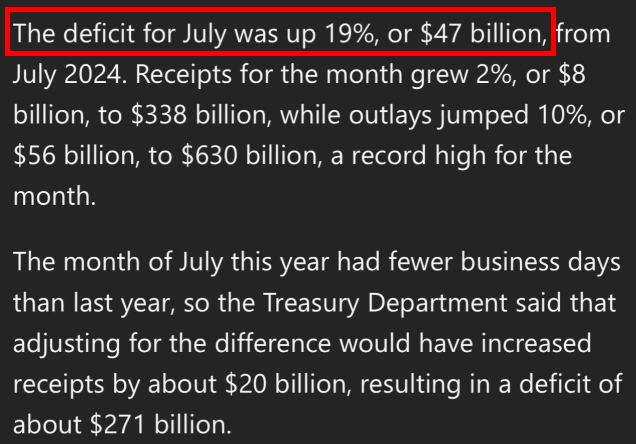 しかし、2025年7月、米国の財政赤字は驚異的な470億ドル、つまり19%急増しました。