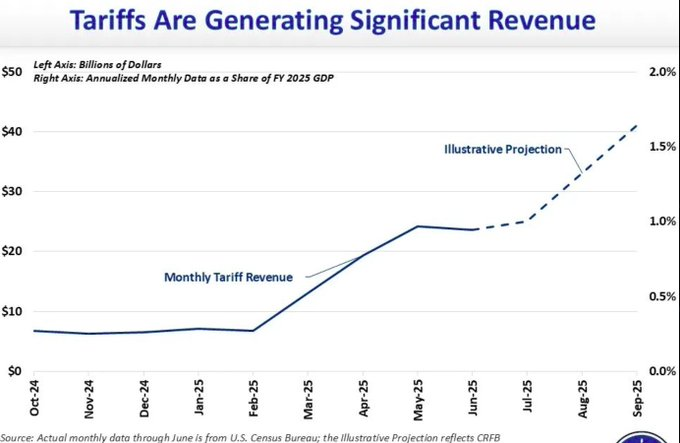 現在のペースでは、米国は関税によってGDPの1.6%以上を調達する見通しです。