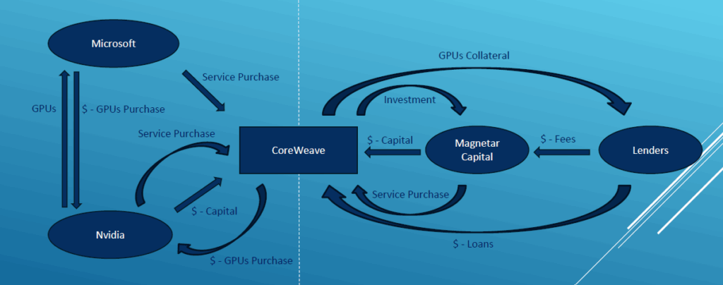 私がCoreWeaveについて初めて触れたのは1年以上前の「Magnetar CapitalはNvidia(ポンジー)スキームの崩壊に賭けるために、その内部に空気を送り込んでいるのでしょうか?」という記事でした。この記事では、ヘッジ・ファンドのMagnetar CapitalのCoreWeaveへの投資が、世界金融危機以前に同社が採用した戦略、すなわちサブプライム・バブルを膨らませてその崩壊に賭けるという戦略と多くの類似点があることを指摘しました。今年3月、「CoreWeaveは、詐欺的IPOの終焉を告げるのか?」という記事で、CoreWeaveが明らかに詐欺的な事業であることを疑う余地のないすべての要素を、誰もが確認できるように明らかにしました。