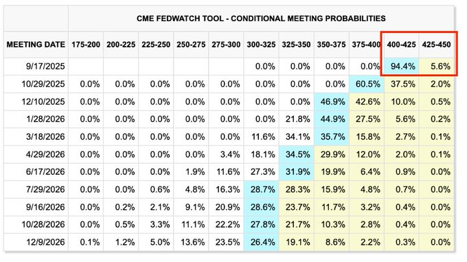 以下に示すように、2025年9月に金利が引き下げられる確率は94%となり、市場は2025年に3回の利下げを基本シナリオとして価格に織り込んでいます。