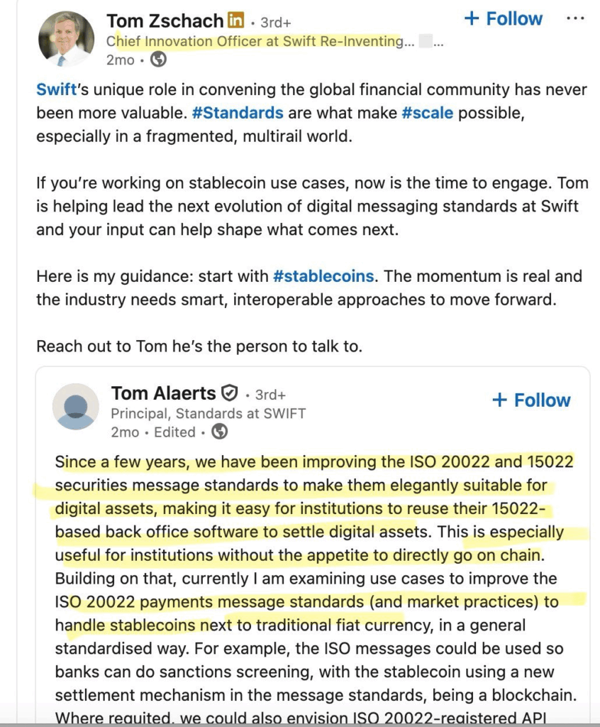 ステーブルコインのユースケースに取り組んでいる方は、今こそ参加すべき時です。トムは、Swiftでデジタルメッセージング基準の次の進化を主導しています。皆様のご意見は、その次の段階の形成に役立てられます。