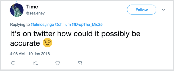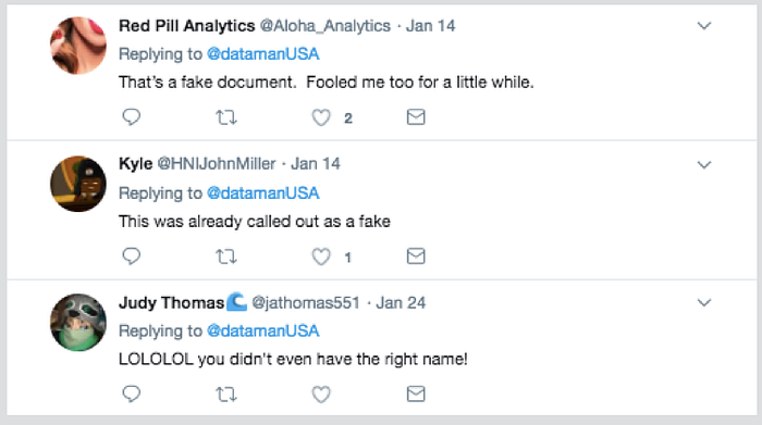 1月30日までに、この偽の書簡は数千件のツイートで共有され、Redditに投稿され、過激なウェブサイト間で共有され、Facebookでも限定的な反響を呼びました。決して、この書簡が批判をまったく受けなかったわけではありません。実際、ユーザーは繰り返しその誤りを指摘していました。
