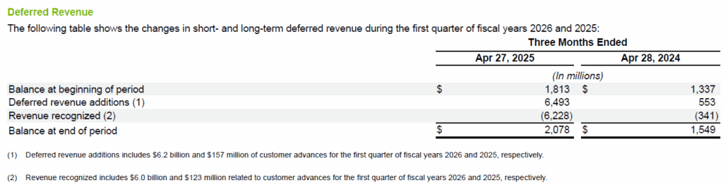 その多額の現金前払いがどこから来たのか、またNvidiaが四半期内にこれを収益として計上できた経緯については、ジェンセン・フアン氏に直接お尋ねになるのが適切でしょう。今四半期においては、この手法により約15億米ドルの収益が計上されており、この比較的少額な金額が、ウォール街が設定した460億6千万米ドルの収益予想を上回る結果となりました。Nvidiaの報告額は467億4千万米ドルでした。