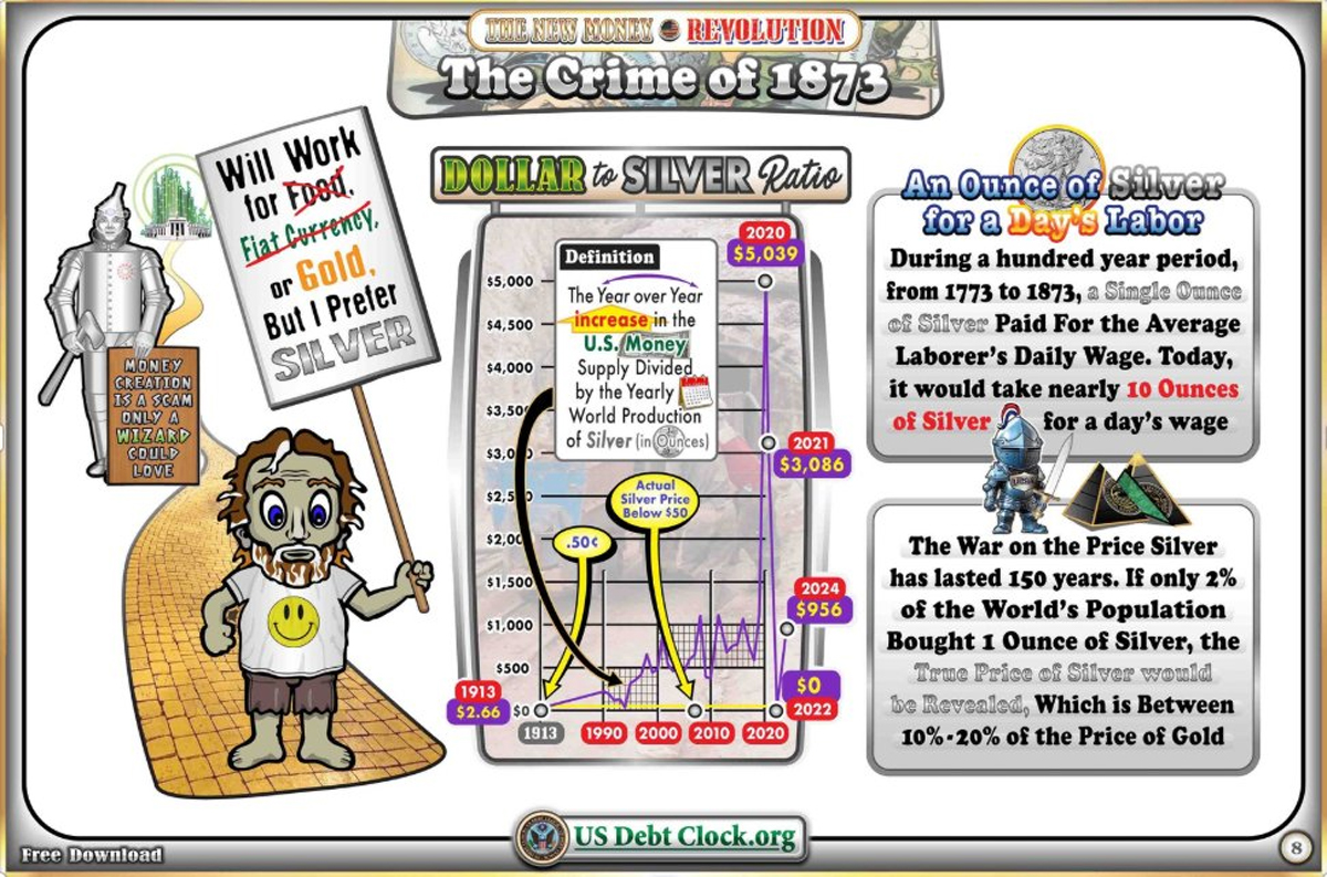 100年間(1773年~1873年)、銀1オンスは1日分の労働に相当しました。今日では同じ賃金を得るのに10オンスが必要です。抑制が明らかです。